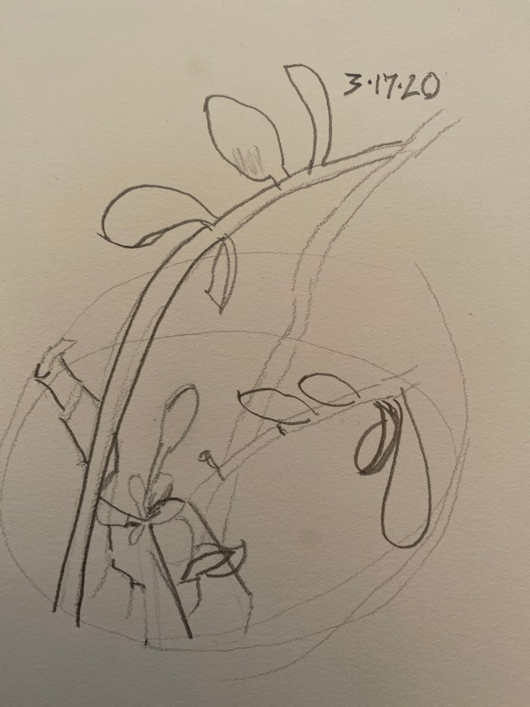 Working on drawing the entire plant. Feels like moving backwards. Getting everything in proportion and “lining up” is difficult.